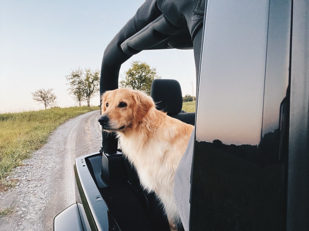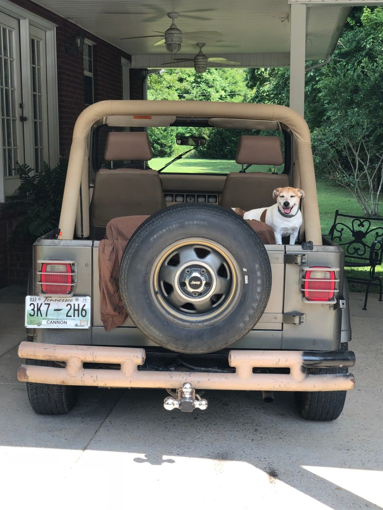 I bought it. I drove that black two door Jeep home with me that day. This is where I tell you how much I needed that Jeep. Ever since I’ve had it, the top’s pretty much been off of it. I don’t drive it every day, but when it’s sunny I’m usually in it. Even in the fall I bundle up and still ride around with the top off. This Jeep has given me freedom in my cancer. Ever since I’ve been diagnosed, my usual Saturday routine– if I felt well– was me and my dog Bertie getting breakfast and coffee at the local coffee shop. Get our favorite playlist going and ride back roads until someone calls to see where we are at. We listened to old country, new country, sad songs, rock songs, church hymns, you can name it we probably listened to it. It was our time together. I rubbed her back while I sang like I could carry a tune, and she held her head out the window so the breeze could blow that blonde hair of hers.