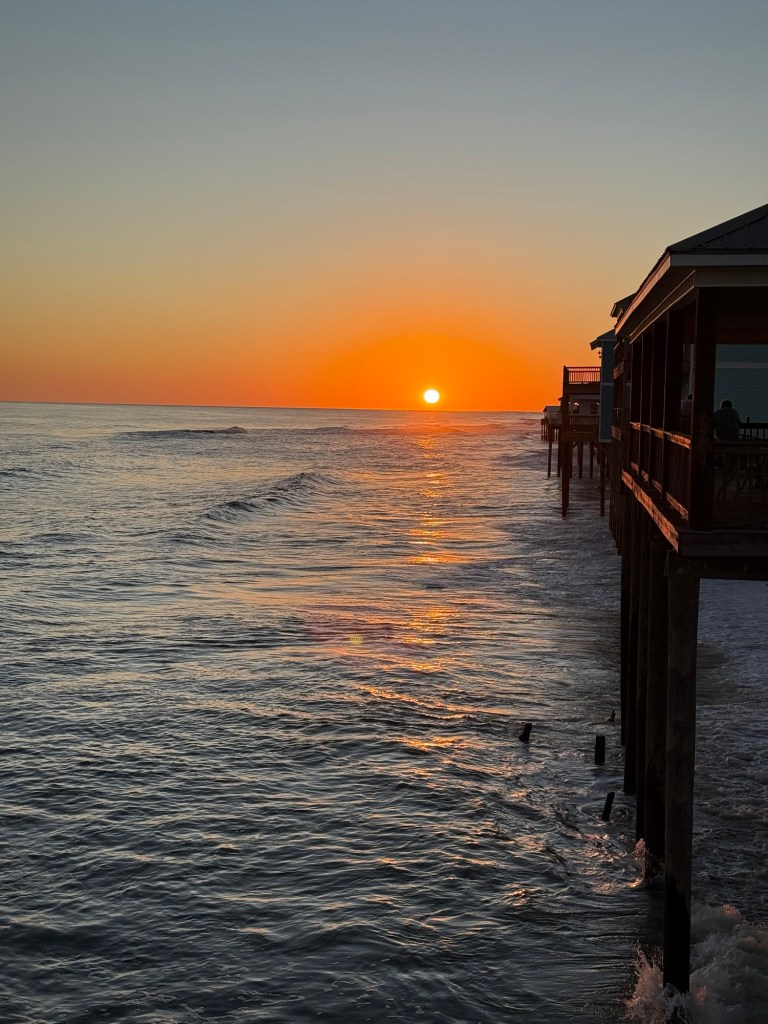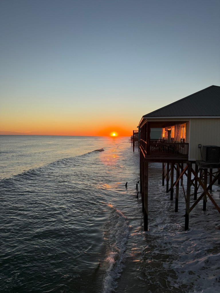 For a back story, my parents and I haven’t taken a trip together since before I got diagnosed. So it was long overdue! It’s hard for me to go with my friends on trips now just because I need help with so many medical needs, and this was exactly what I needed. I was excited to finally get away from our everyday routine! We booked our get-away with a couple of family friends to one of my favorite places called Dauphin Island, AL. It’s a small island outside of Mobile, AL— there’s not much there but a couple places to grab a bite. The houses are basically in the ocean and you have sunsets and sunrises and it’s just picture perfect.